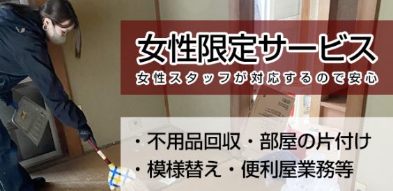 女性限定の女性スタッフ対応の片付け代行サービス、片付けサポートを行っていますのでお気軽にお問い合わせ下さい。